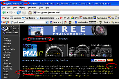 Look at how the keyword ‘digital camera’ has been used in the title, the heading, linking text and the body copy.